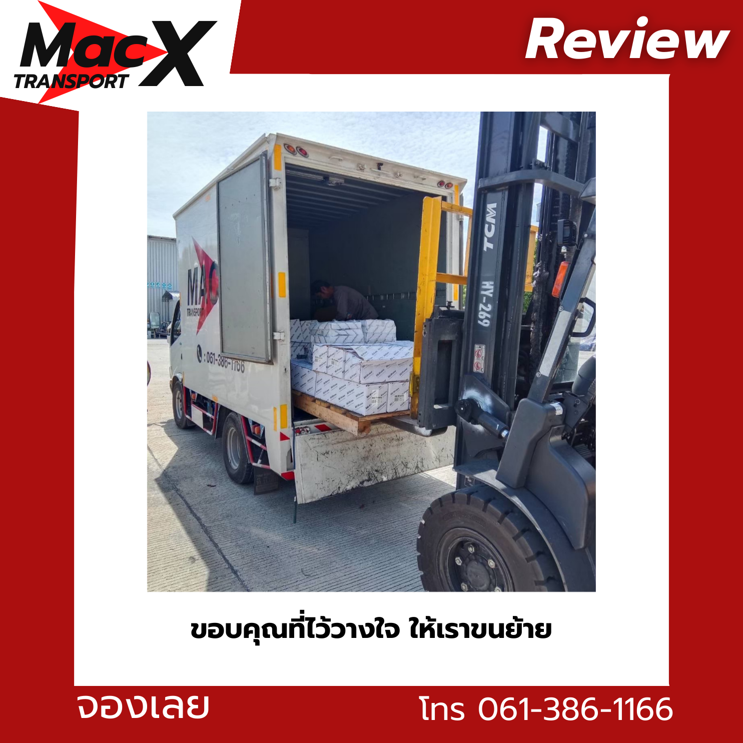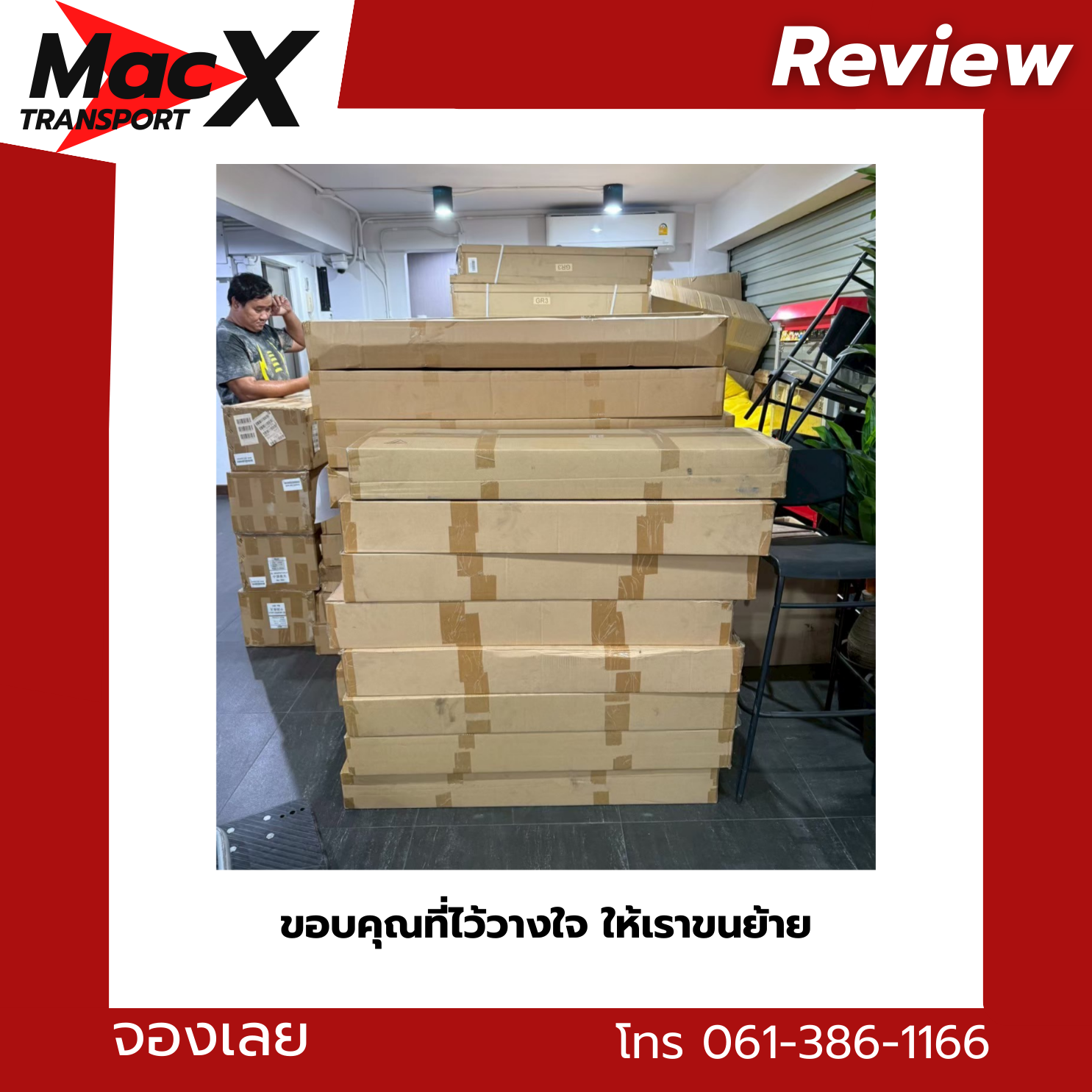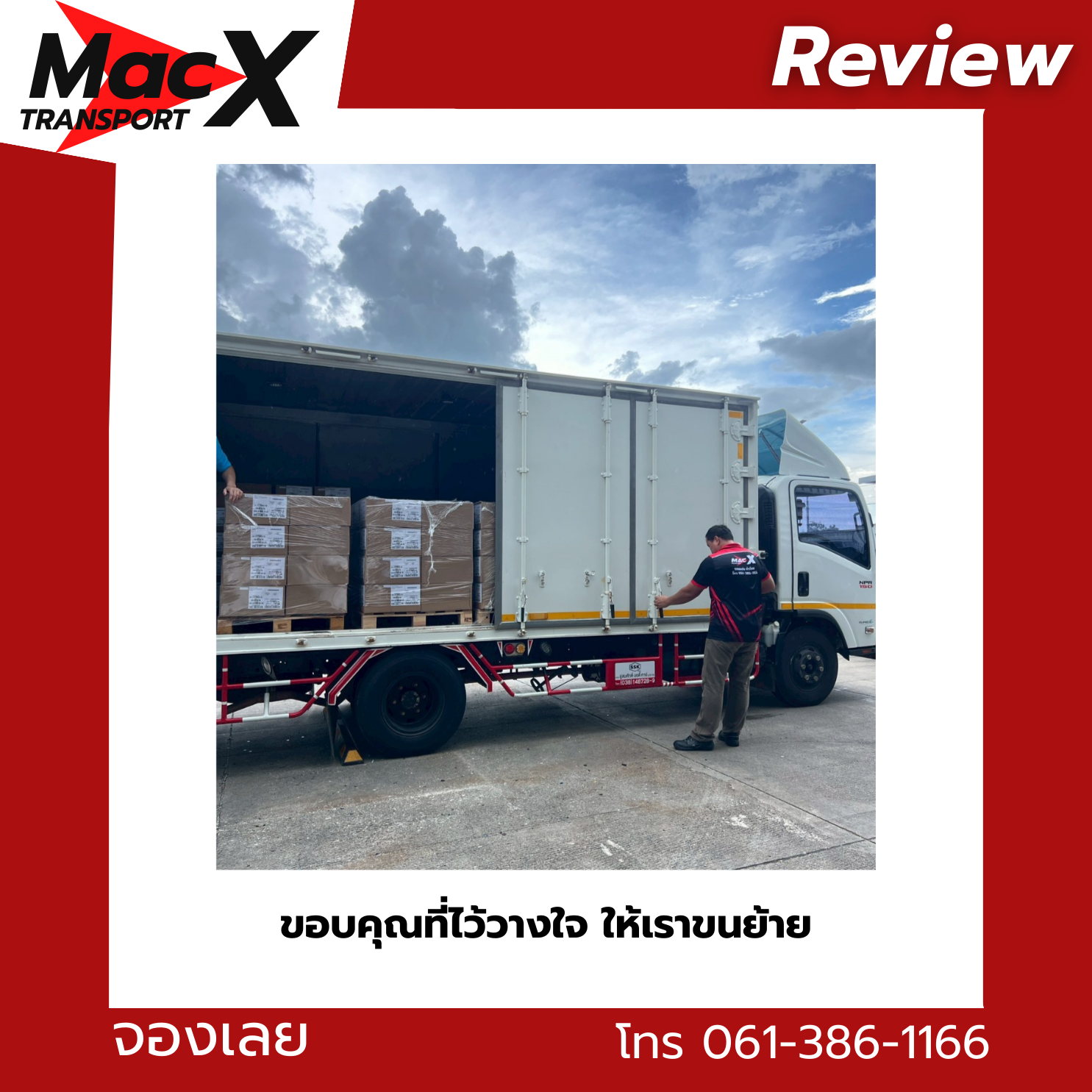 MacX Transport ให้บริการรถรับจ้างขนของทั่วกรุงเทพฯ นนทบุรี ปทุมธานี และทั่วประเทศ ติดต่อได้ที่โทร 061-386-1166 หรือ LINE: @mackitransports