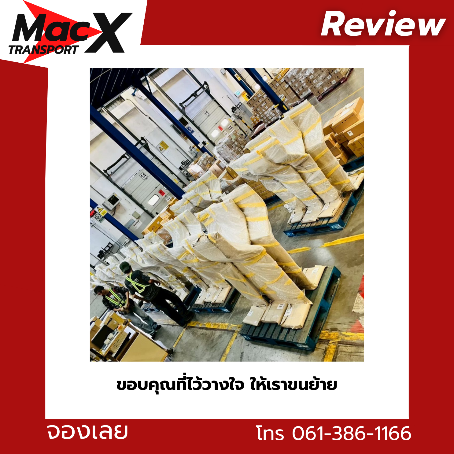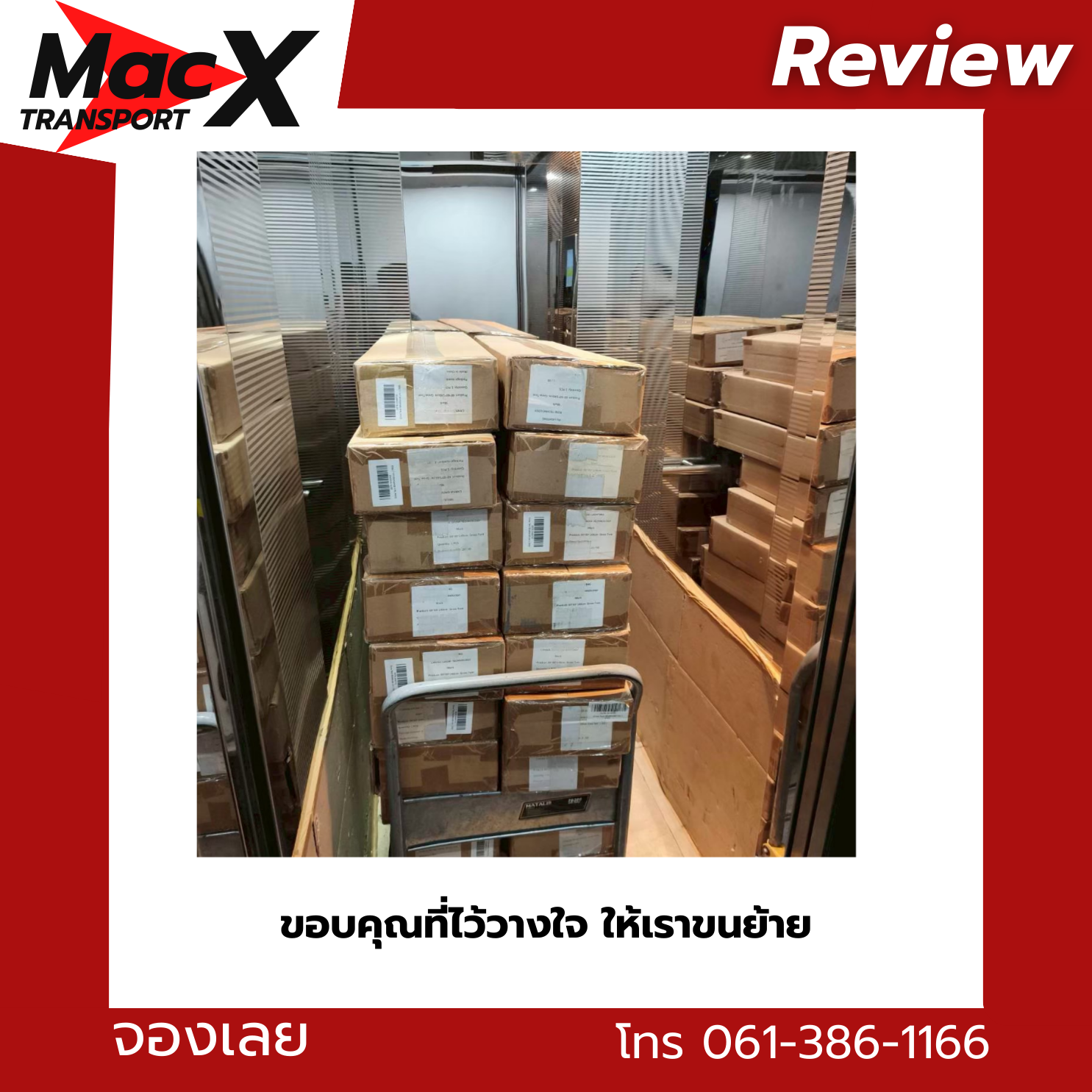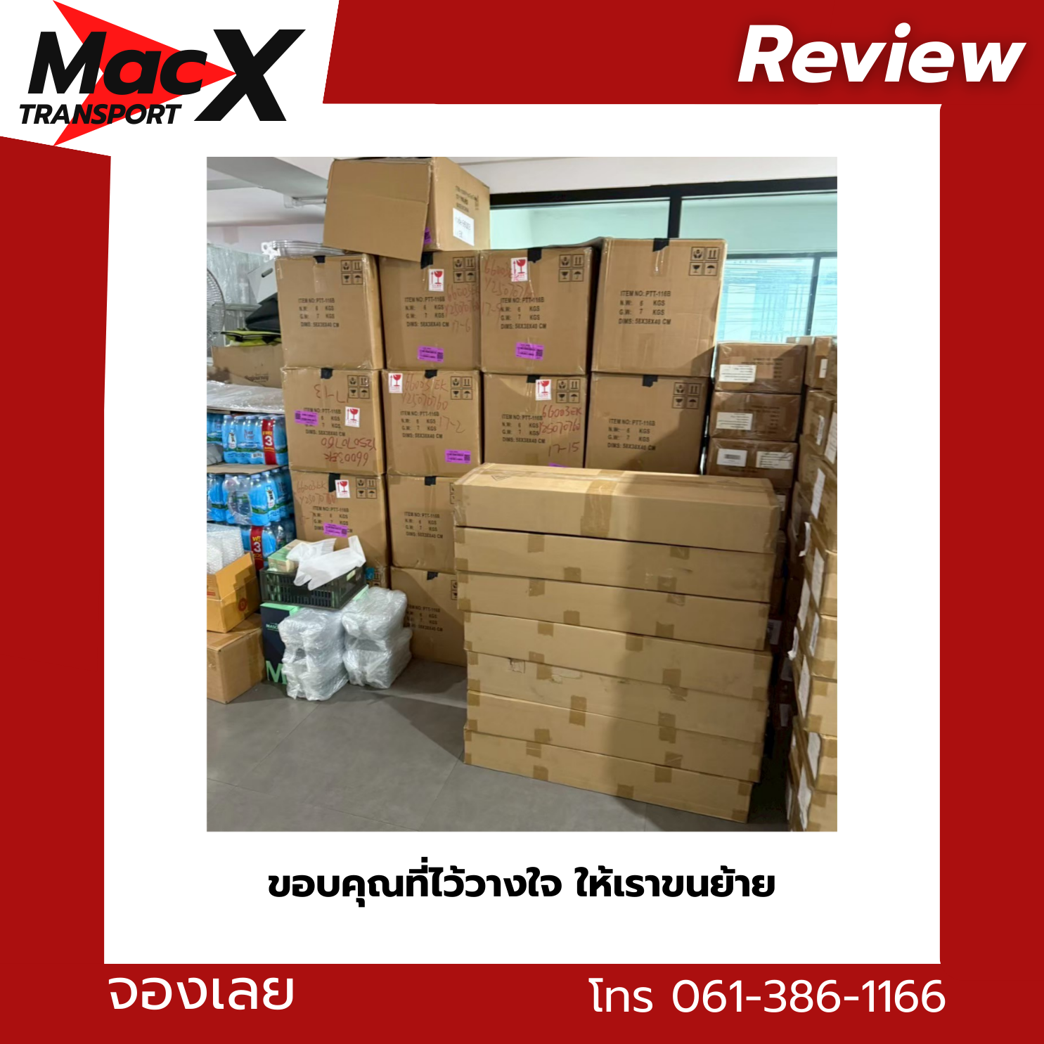 MacX Transport ให้บริการรถรับจ้างขนของทั่วกรุงเทพฯ นนทบุรี ปทุมธานี และทั่วประเทศ ติดต่อได้ที่โทร 061-386-1166 หรือ LINE: @mackitransports
